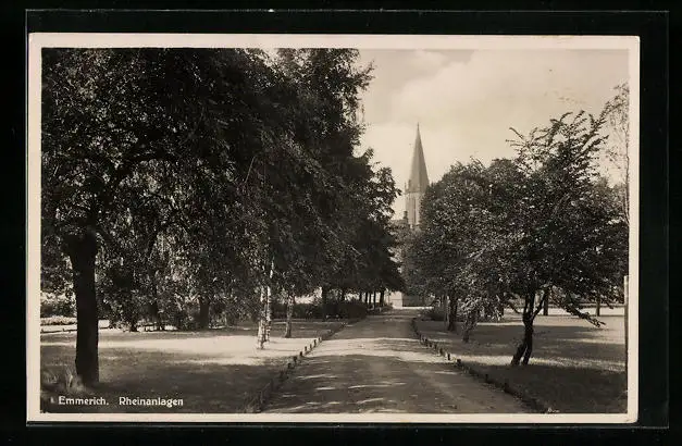 AK Emmerich, Rheinanlagen mit Kirche
