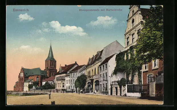 AK Emmerich, Rheinpromenade mit Martinikirche