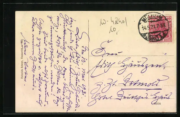 alte Ansichtskarte, gelaufen 1921, guter Zustand
