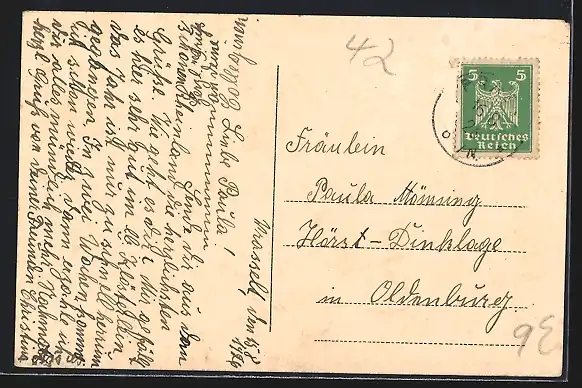 alte Ansichtskarte, gelaufen, rückseitig Oberflächenschaden, guter Zustand