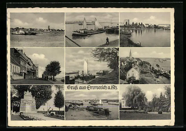 AK Emmerich a. Rh., Hafen mit Dampfern, Denkmal