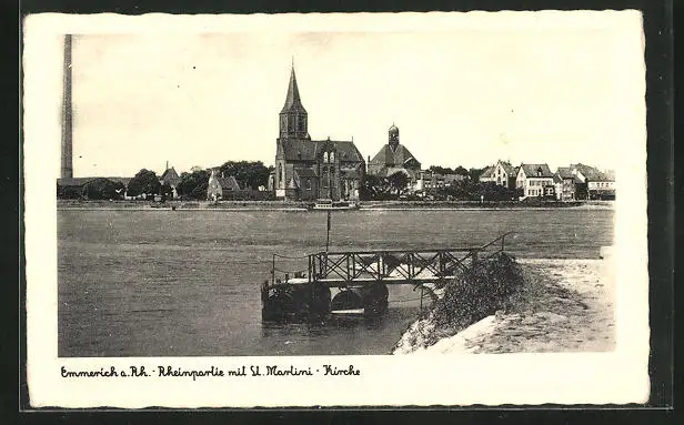 AK Emmerich a. Rh., Rheinpartie mit St. Martini-Kirche