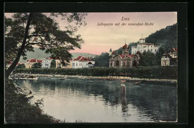 AK Ems, Lahnpartie mit der russichen Kirche