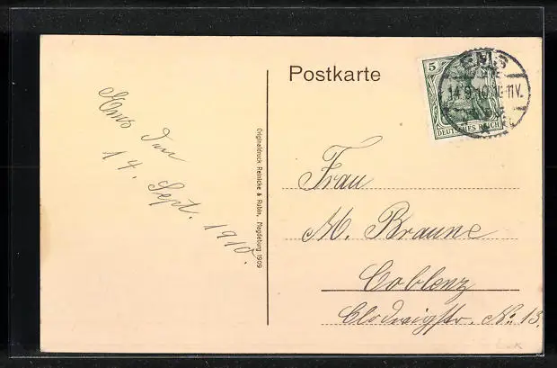 alte Ansichtskarte, gelaufen 1910, guter Zustand