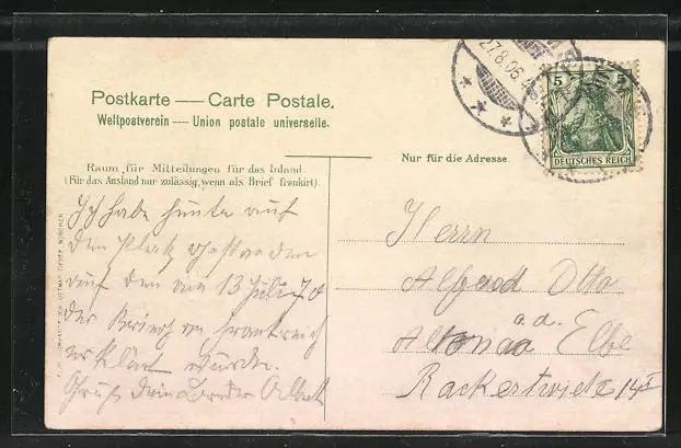alte Ansichtskarte, gelaufen 1906, Stempelspur, sonst guter Zustand