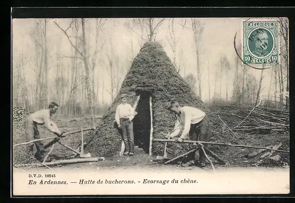 AK En Ardennes, Hutte de bucherons, Ecorsage du Chène