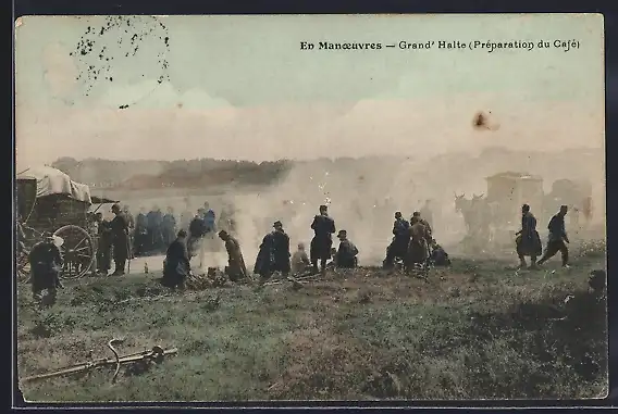 AK En Maoeuvres, Grand`Halte, Préparation du Café