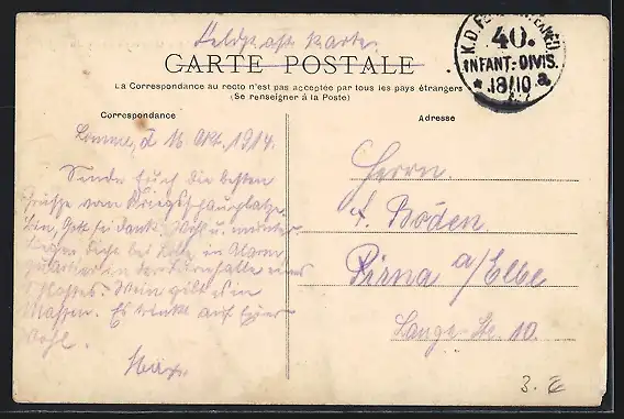 alte Ansichtskarte, gelaufen, Stempelspur, Eckschaden li. unten, guter Zustand
