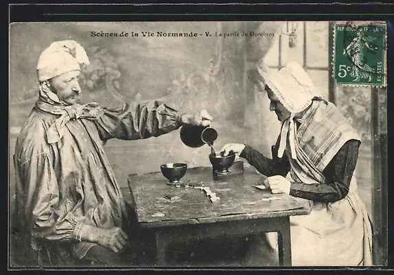 AK En Normandie, La partie de Dominos, Paar beim Domino