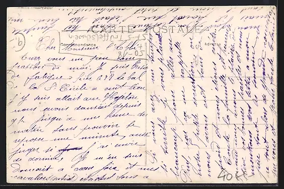 Personenbezogene Daten auf der Rückseite der Karte wurden durch blauen Textmarker unkenntlich gemacht. Die blauen Stellen sind auf die Vorderseite durchgeweicht und wirken sich negativ auf das Postkartenfoto aus