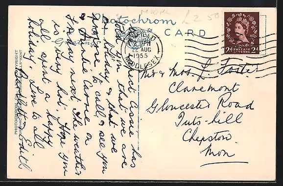 alte Ansichtskarte, gelaufen 1955, Stempelspur, guter Zustand