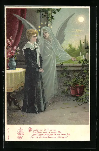 AK Engel bei einer jungen Frau, Elterngrab