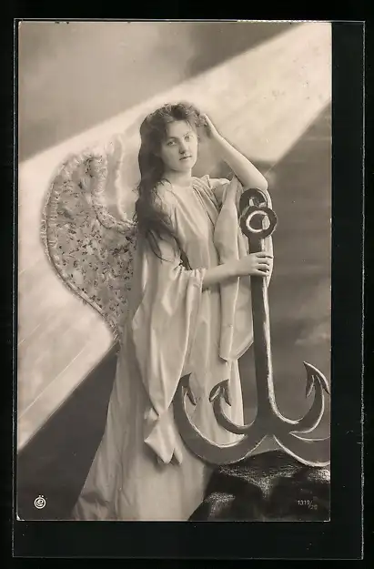 AK Engel mit Anker in der Hand
