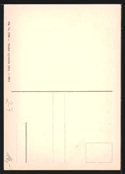 Personenbezogene Daten auf der Rückseite der Karte wurden durch blauen Textmarker unkenntlich gemacht. Die blauen Stellen sind auf die Vorderseite durchgeweicht und wirken sich negativ auf das Postkartenfoto aus