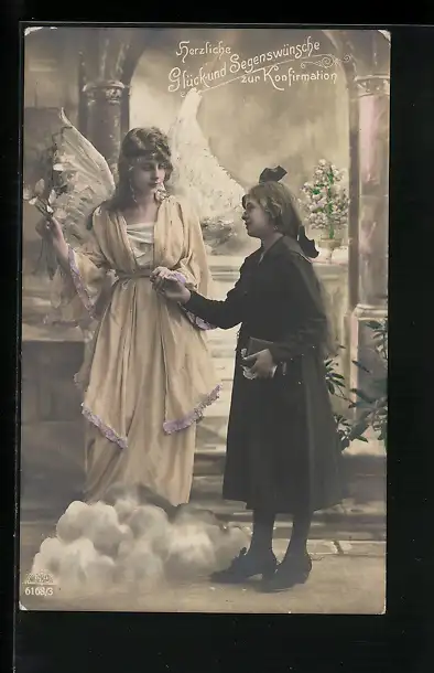 AK Engel nimmt Mädchen zur Konfirmation an die Hand