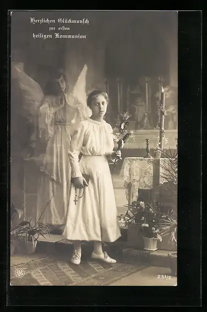 AK Engel segnet ein Mädchen bei ihrer Kommunion