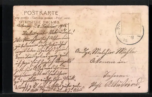alte Ansichtskarte, gelaufen 1915, Briefmarke entfernt, guter Zustand