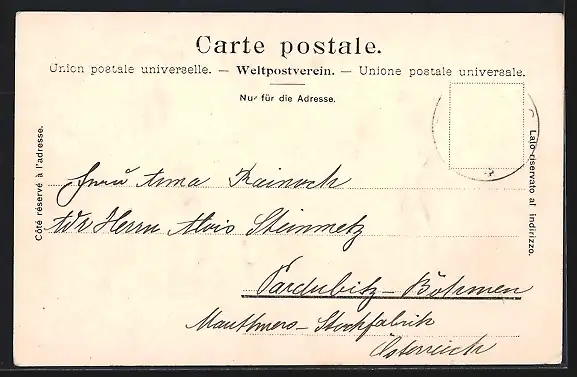 alte Ansichtskarte, gelaufen, Briefmarke entfernt, guter Zustand