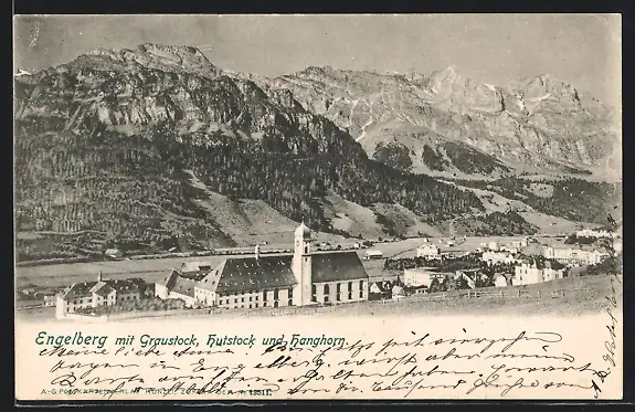 AK Engelberg, Ortsansicht mit Graustock, Hutstock und Hanghorn