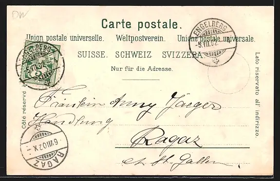 gelaufen 1902, Eckknick re. unten, guter Zustand