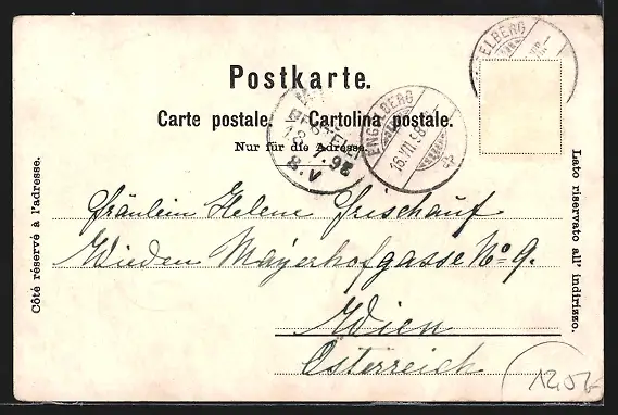 alte Ansichtskarte, gelaufen 1898, Briefmarke entfernt, Eckknicke li., guter Zustand