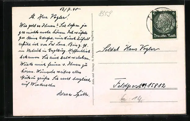 alte Ansichtskarte, gelaufen 1940, guter Zustand