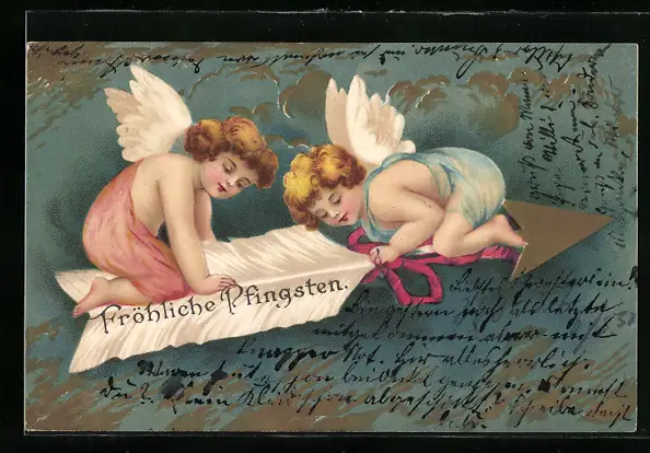 AK Engelchen mit einem Pfeil zu Pfingsten