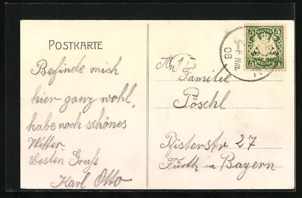 alte Ansichtskarte, gelaufen 1906, guter Zustand