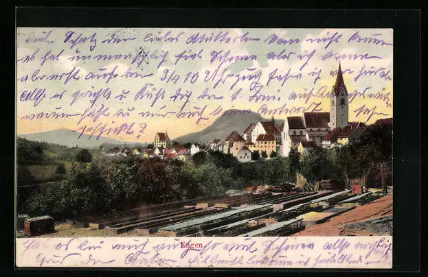 AK Engen i. Hegau, Gartenpartie mit Ortsansicht und Kirche