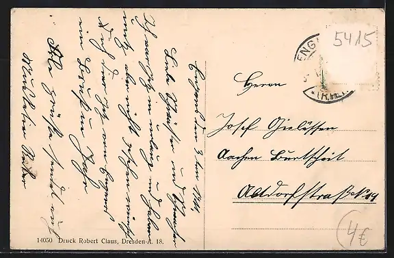 alte Ansichtskarte, gelaufen 1911, Briefmarke entfernt, rückseitig Oberflächenschaden, Stempelspur, guter Zustand