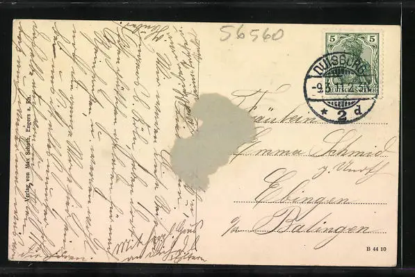 alte Ansichtskarte, gelaufen 1911, rückseitig Klebe- und Papierreste, guter Zustand