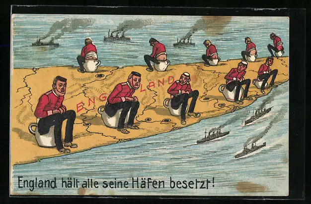 AK Engländer auf einer stilisierten Landkarte auf Nachttöpfen sitzend