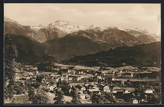 AK Ennenda, Ortsansicht mit Bergpanorama
