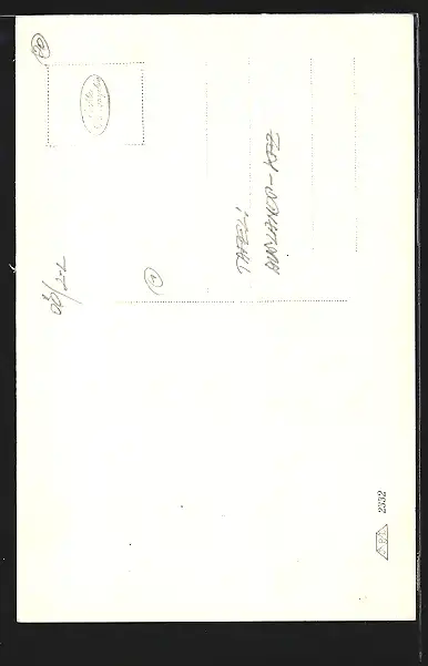 Personenbezogene Daten auf der Rückseite der Karte wurden durch blauen Textmarker unkenntlich gemacht. Die blauen Stellen sind auf die Vorderseite durchgeweicht und wirken sich negativ auf das Postkartenfoto aus