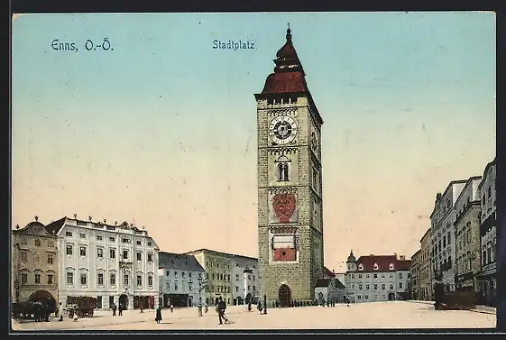 AK Enns /O.-Ö., Uhrturm am Stadtplatz