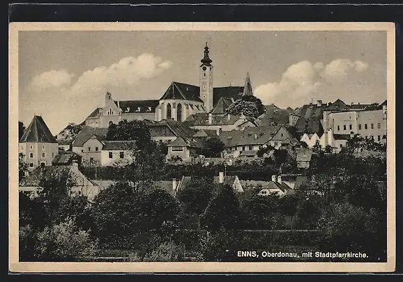 AK Enns /Oberdonau, Teilansicht mit Stadtpfarrkirche