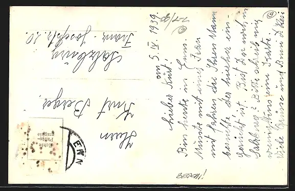 gelaufen 1939, Briefmarke entfernt, guter Zustand