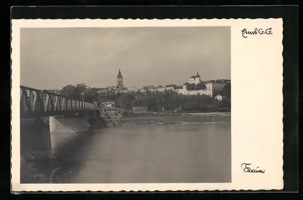 AK Enns, Uferpartie mit Kirche
