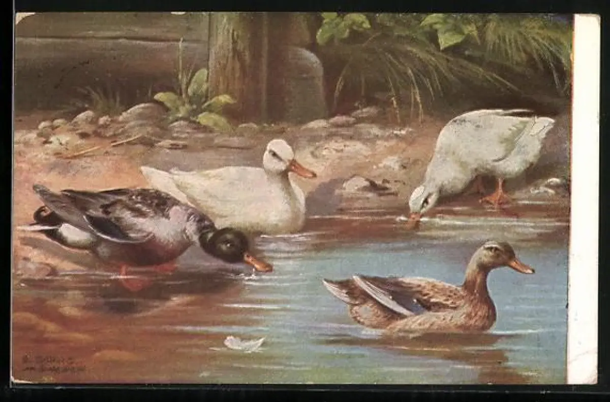 AK Enten an einem Gewässer