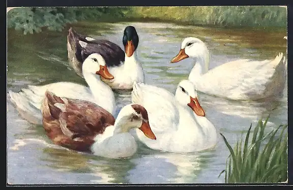 AK Enten auf einem Gewässer