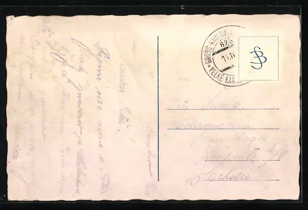 alte Ansichtskarte, gelaufen, Briefmarke entfernt, Eckknick oben re., Bugspur oben li., guter Zustand