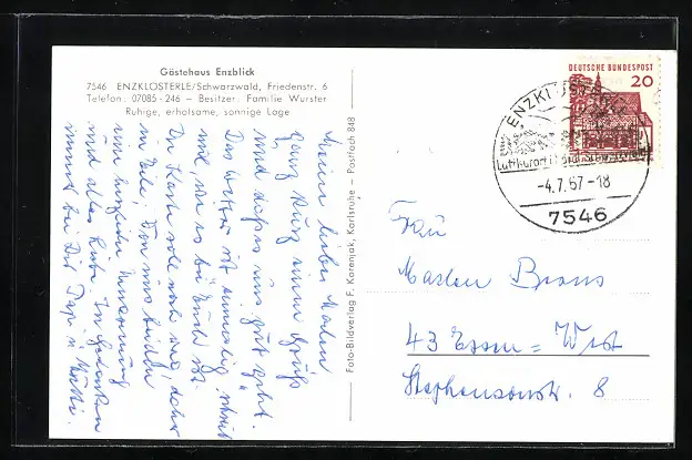 AK Enzklösterle /Schwarzwald, Gästehaus Enzblick