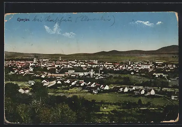 AK Eperjes, Ortsansicht aus der Vogelschau