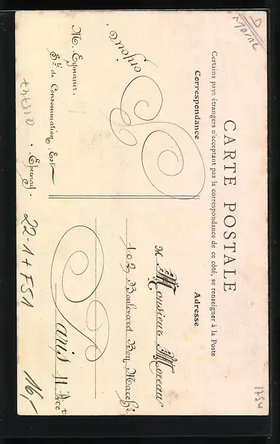 Personenbezogene Daten auf der Rückseite der Karte wurden durch blauen Textmarker unkenntlich gemacht. Die blauen Stellen sind auf die Vorderseite durchgeweicht und wirken sich negativ auf das Postkartenfoto aus