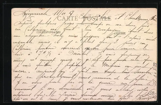 Personenbezogene Daten auf der Rückseite der Karte wurden durch blauen Textmarker unkenntlich gemacht. Die blauen Stellen sind auf die Vorderseite durchgeweicht und wirken sich negativ auf das Postkartenfoto aus