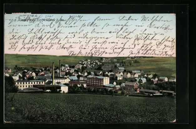 AK Eppendorf i. Sa., Ortsansicht zwischen Hügeln