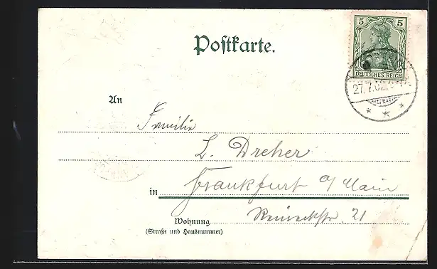 alte Ansichtskarte, gelaufen 1902, Eckknick li. unten, guter Zustand
