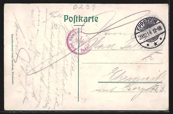 alte Ansichtskarte, gelaufen 1914, Eckknicke li. oben, Stempelspur, guter Zustand