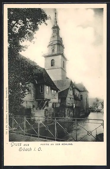 AK Erbach i. O., Partie mit Kirche an der Mümling
