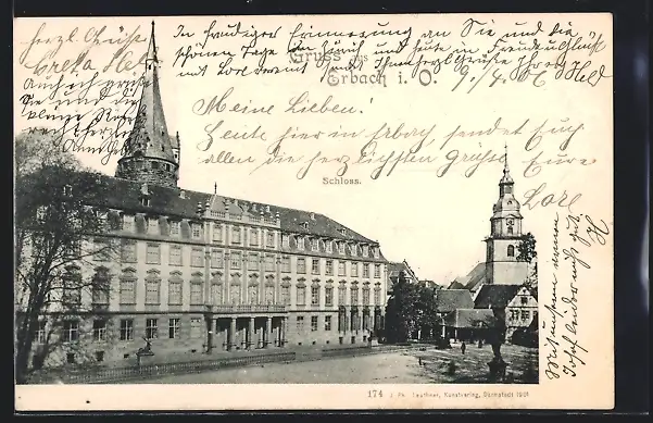 AK Erbach i. O., Schloss mit Blick zur Kirche